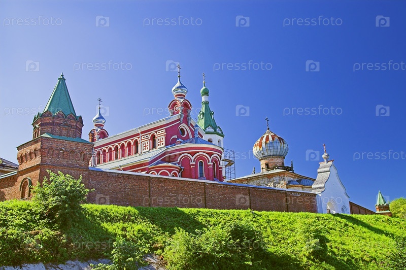 Красивый православный монастырь на фоне ясного неба