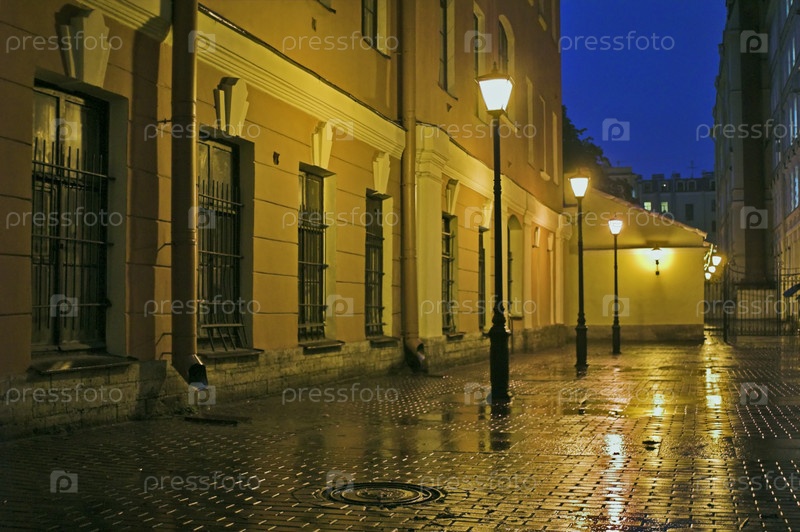 Санкт-Петербург, внутренний двор дома, вечер, работает уличное освещение