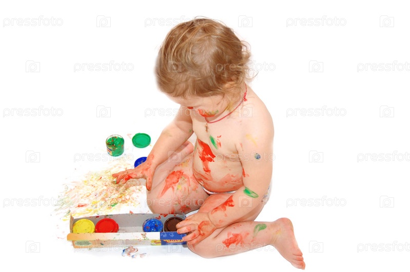 Маленькая девочка рисует на белом фоне
