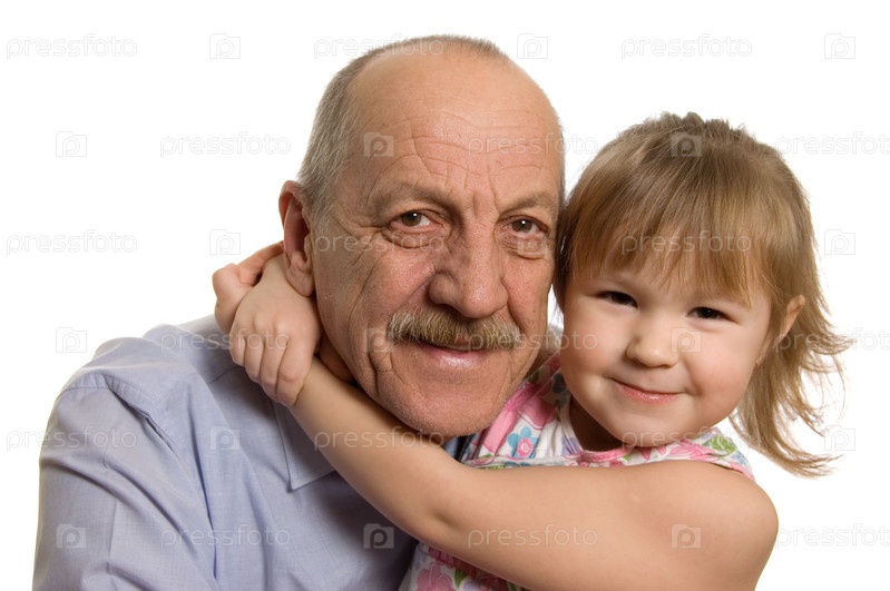Дедушка с внучкой на белом фоне