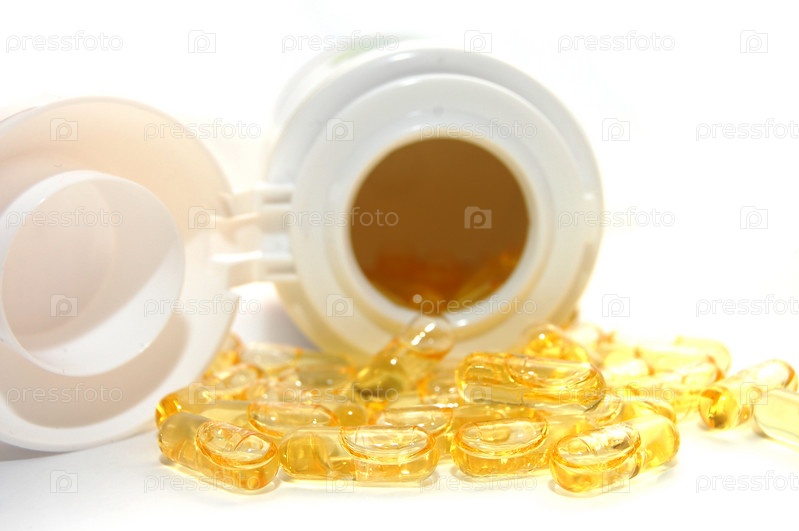 Баночка с таблетками на белом фоне