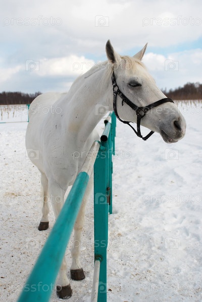 Белая лошадь в загоне