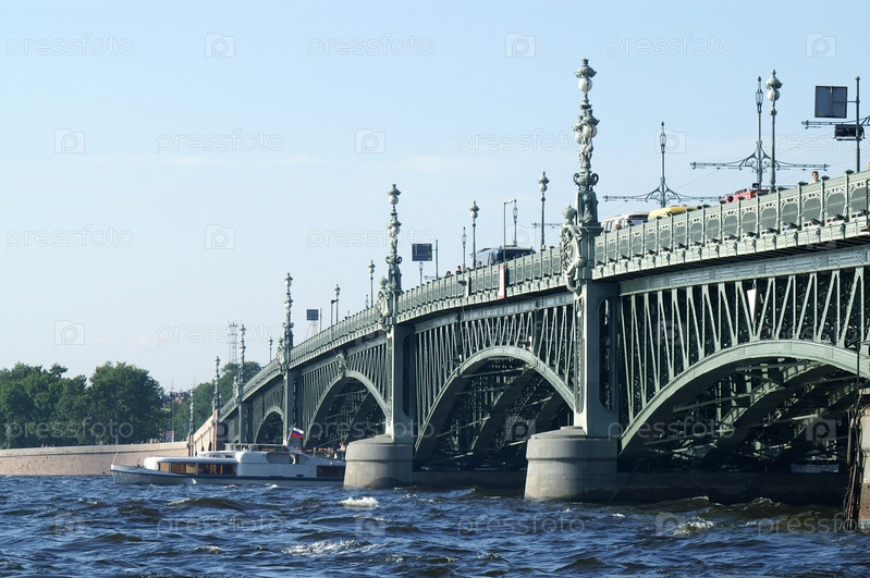 Лодка под Троицким мостом в Санкт-Петербурге