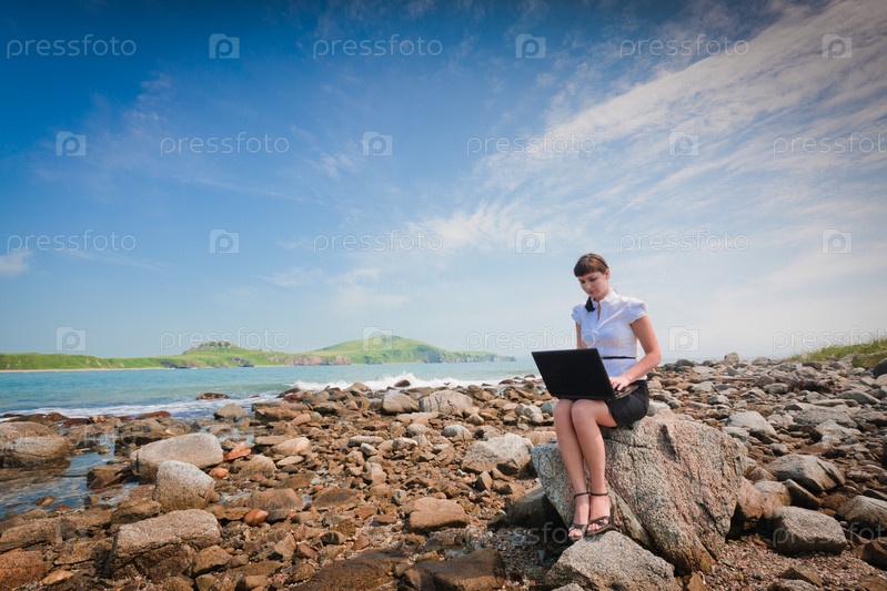 Девушка с ноутбуком на природе