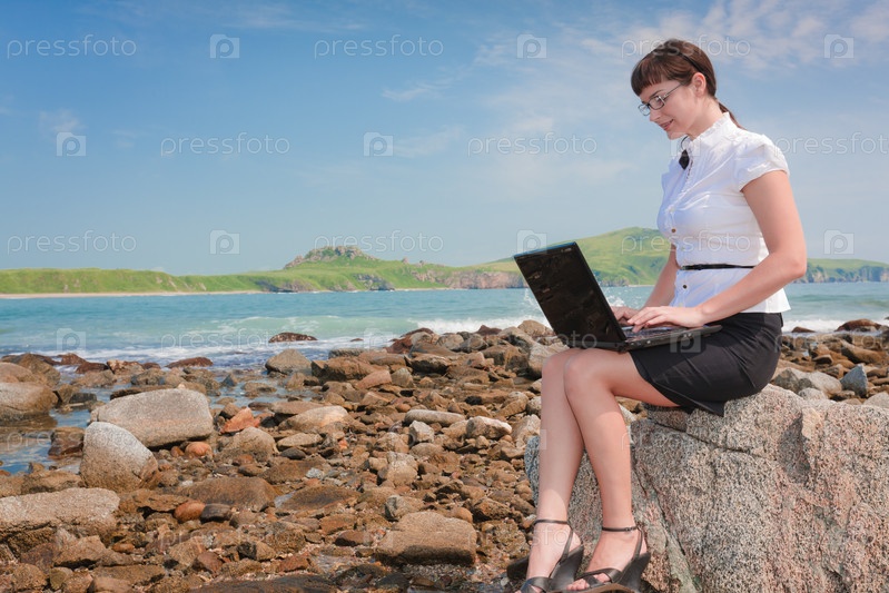 Девушка с ноутбуком на природе