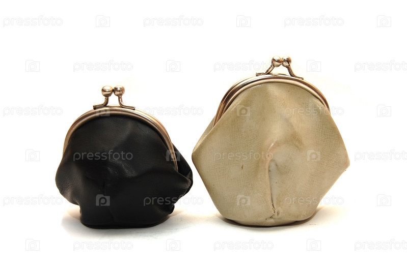 Два старых кошелька на белом фоне