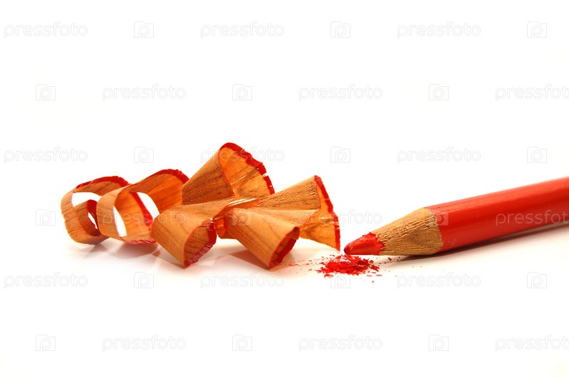 Наточенный оранжевый карандаш на белом фоне