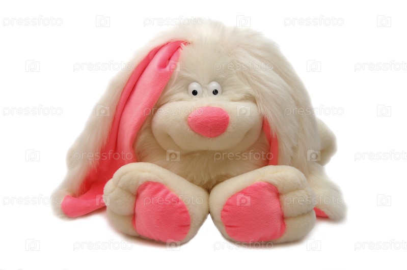 Мягкий заяц на белом фоне