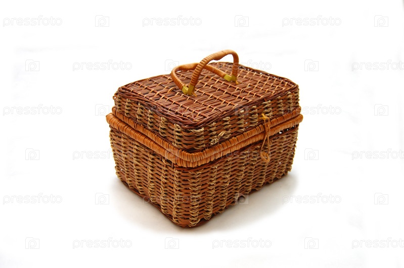 Плетеная шкатулка на белом фоне