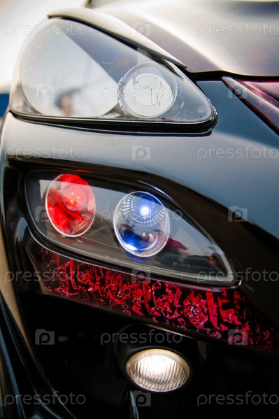 Передняя фара черного автомобиля