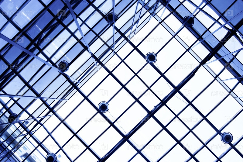 Прозрачный потолок офисного здания в качестве фона. Синий оттенок