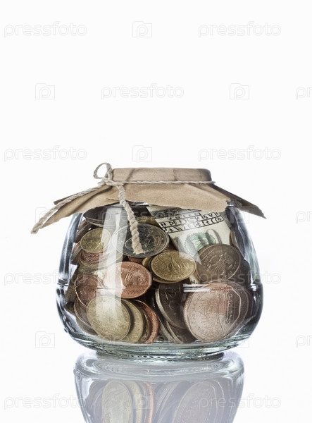 Стеклянная банка, наполненная деньгами