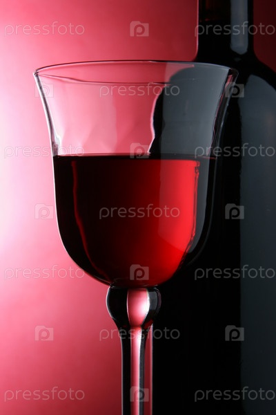 Бокал красного вина и бутылка