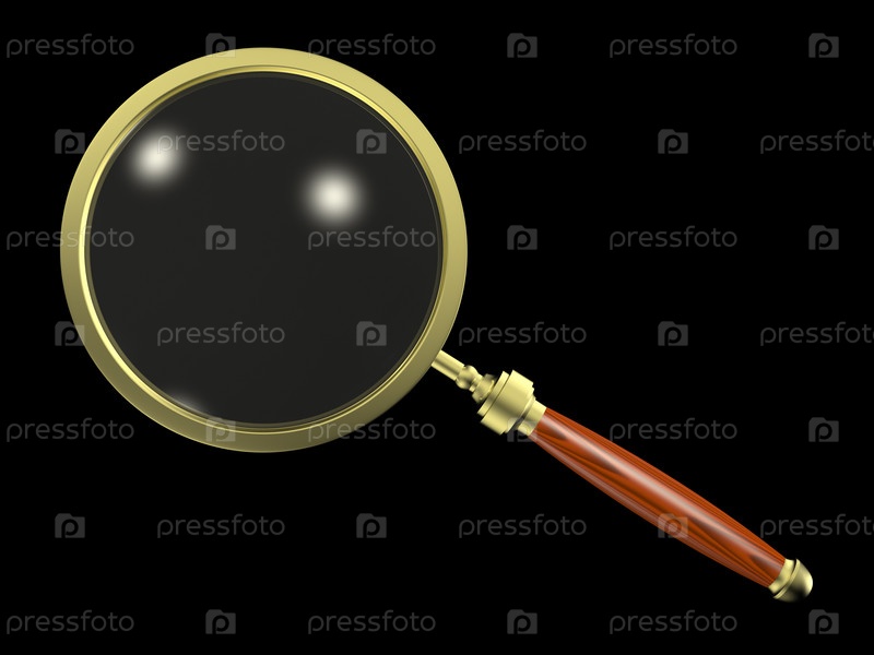 Объектив с бронзовой подвеской с деревянной ручкой на черном фоне