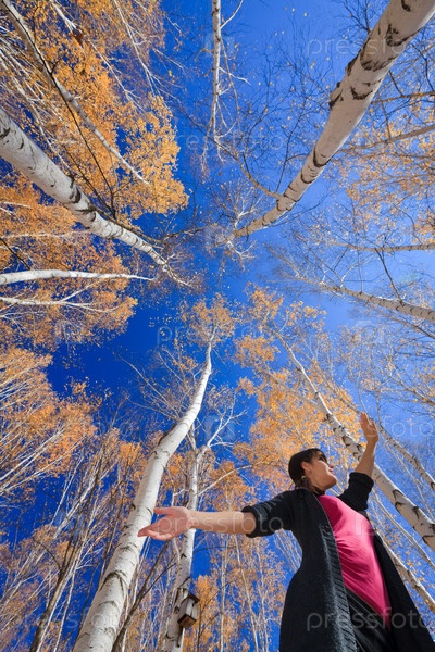 Девушка отдыхает в березовой роще