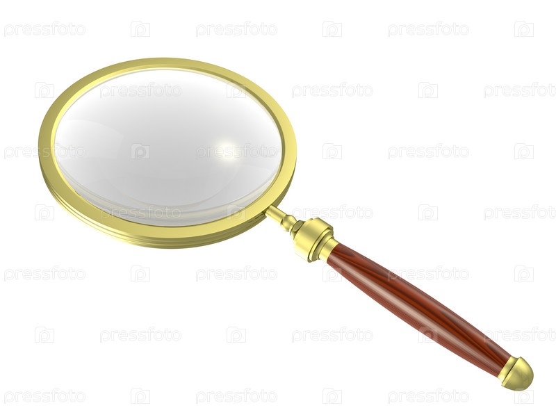Лупа с деревянной ручкой на белом фоне