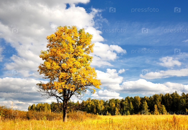 Прекрасное осеннее солнце и луговое желтое дерево