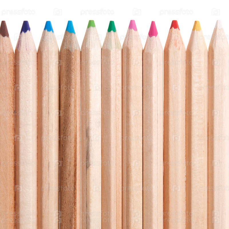Ряд цветных карандашей, изолированных на белом фоне