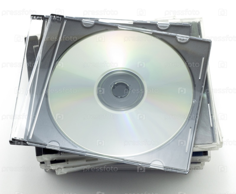 CD-диски в коробках, изолированных на белом фоне