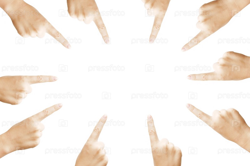 Женские руки показывают указательный палец на белом фоне