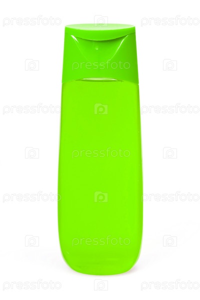 Флакон с зеленой крышкой и с зеленой жидкостью, изолированные на белом фоне