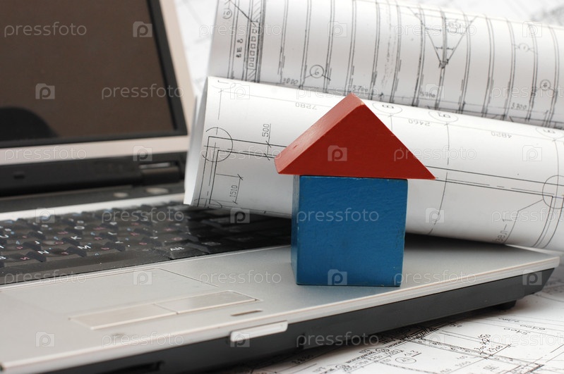 Домик, чертежи и ноутбук