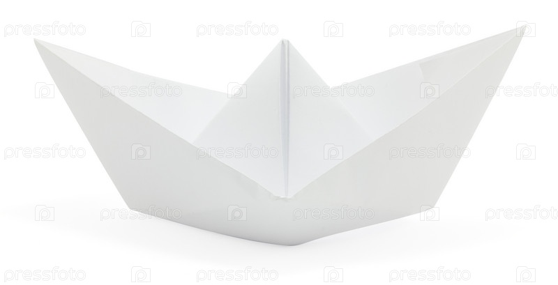 Белый бумажный кораблик на белом фоне