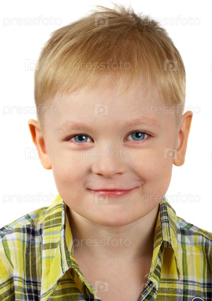 Портрет светловолосого мальчика на белом фоне