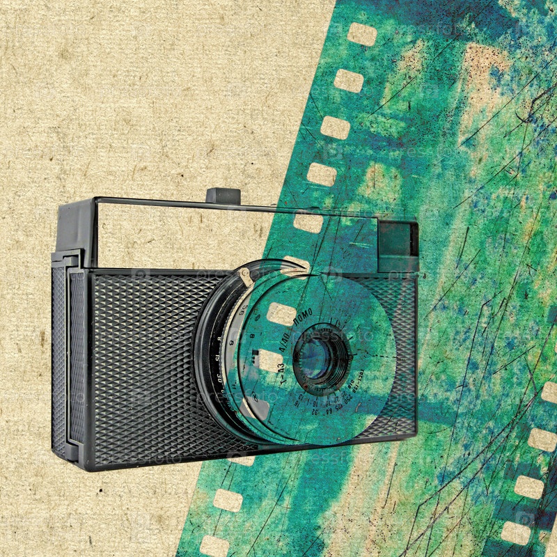 Состаренный цветной коллаж с фотоаппаратом