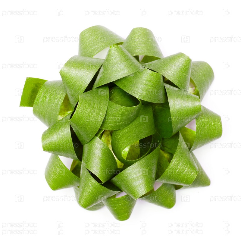 Зеленый бант, изолированный на белом фоне