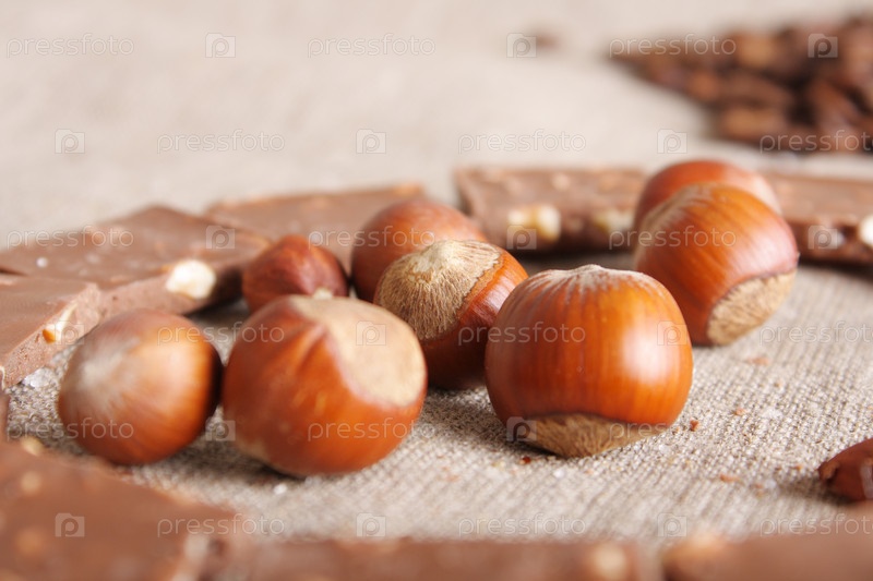 Сладкий шоколад, орехи и кофе (красивая натюрморт)
