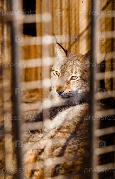 Рысь в зоопарке в клетке