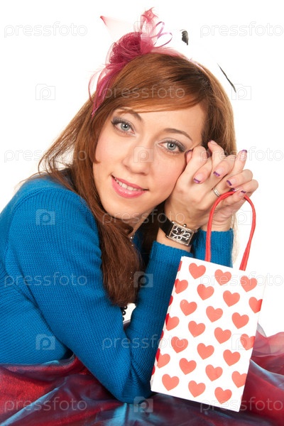 Молодая женщина с сумкой, изолированная на белом фоне