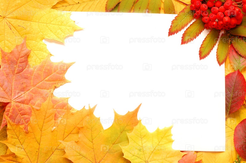 Ягоды рябины и опавшие листья вокруг чистого листа бумаги