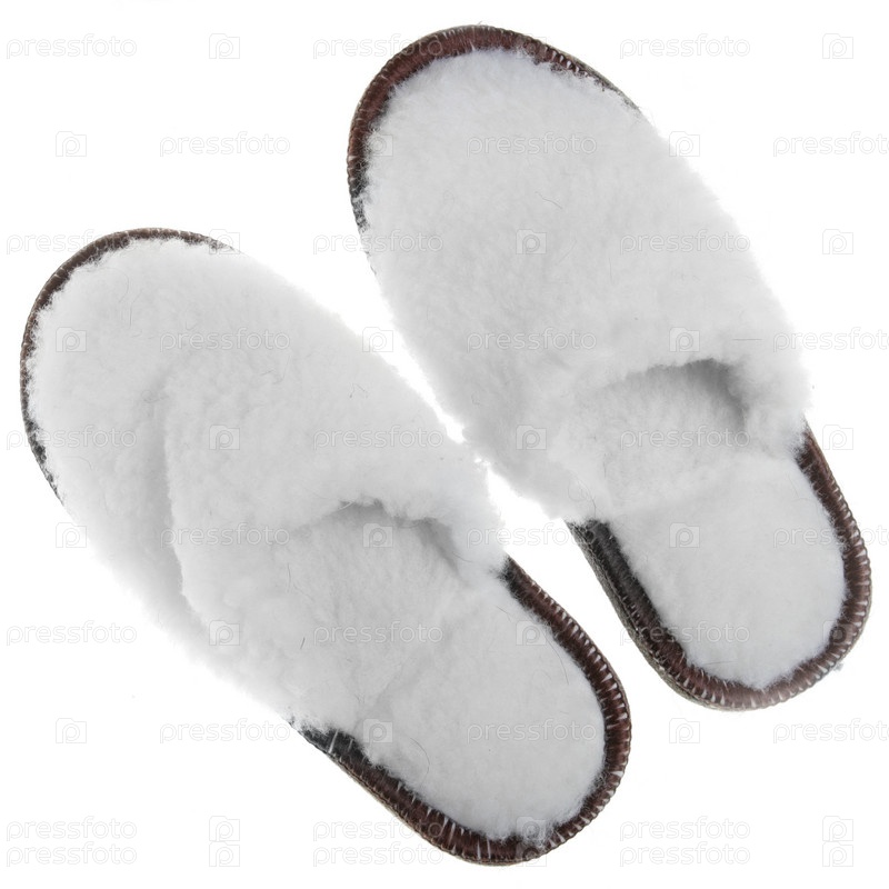 Теплые тапочки на белом фоне