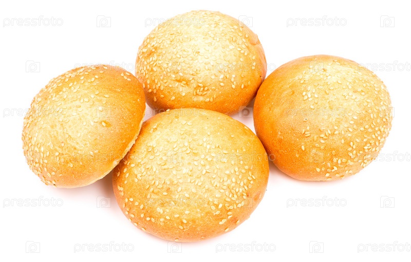 Четыре булочки с кунжутом, изолированные на белом фоне