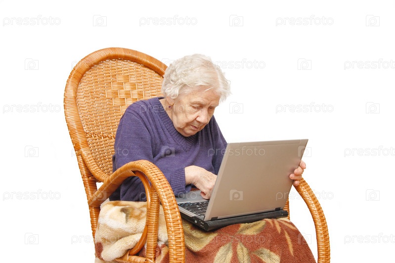 Бабушка с ноутбуком в кресле