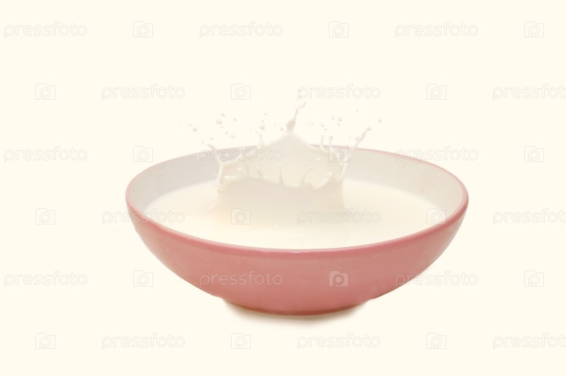 Молоко в миске на белом фоне