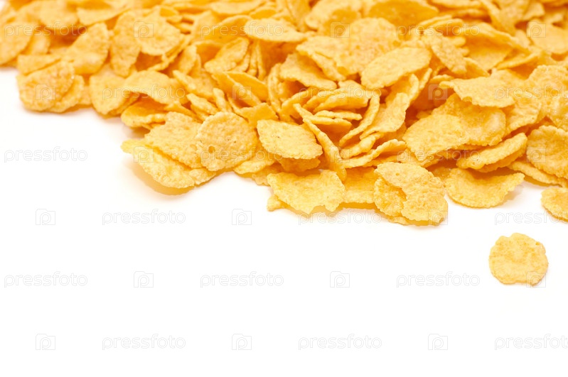 Кукурузные хлопья на белом фоне