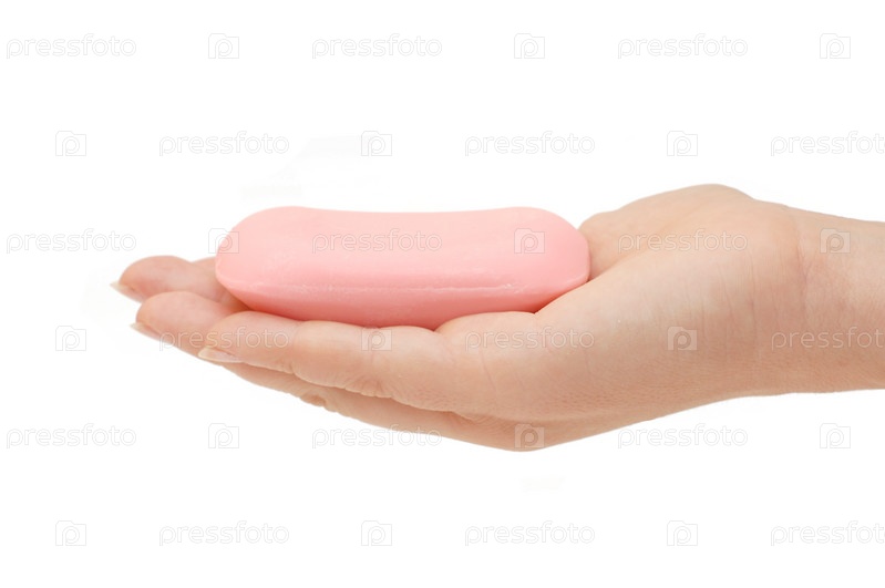 Мыло в руке на белом фоне