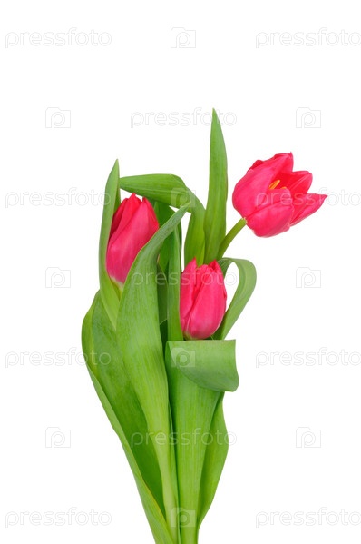 Три тюльпаны на белом фоне