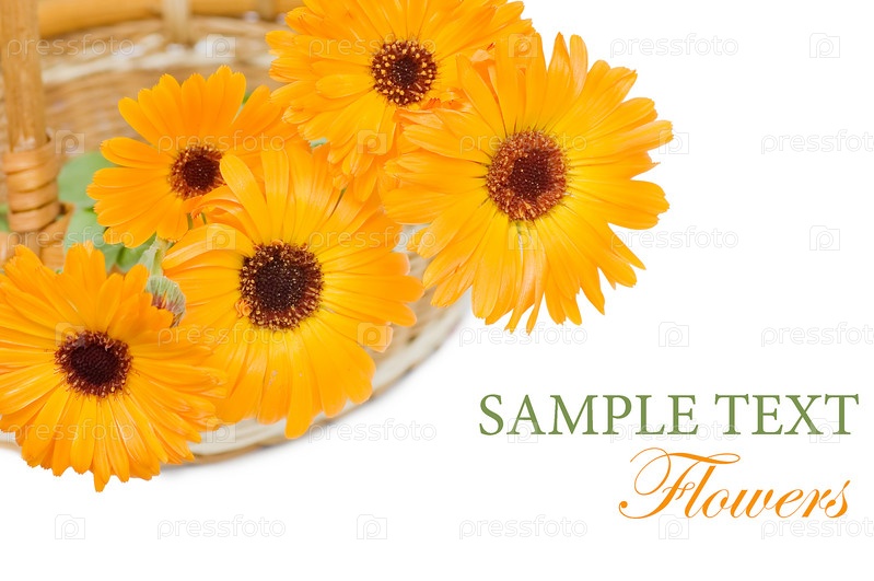 Букет цветов и место для текста на белом фоне