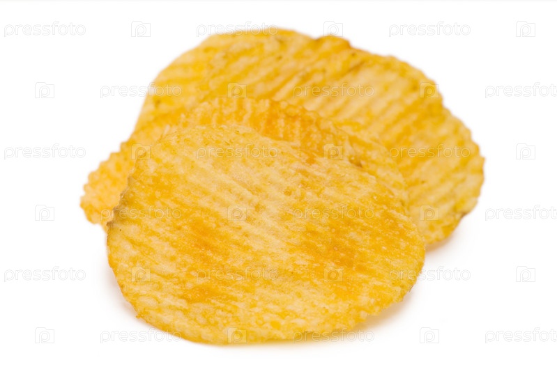 Картофельные чипсы на белом фоне