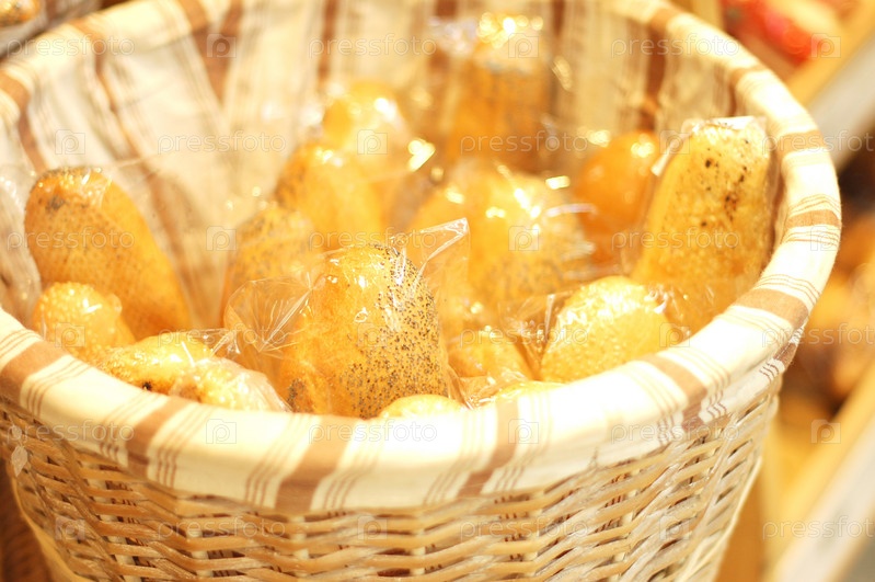 Свежие батоны в корзине