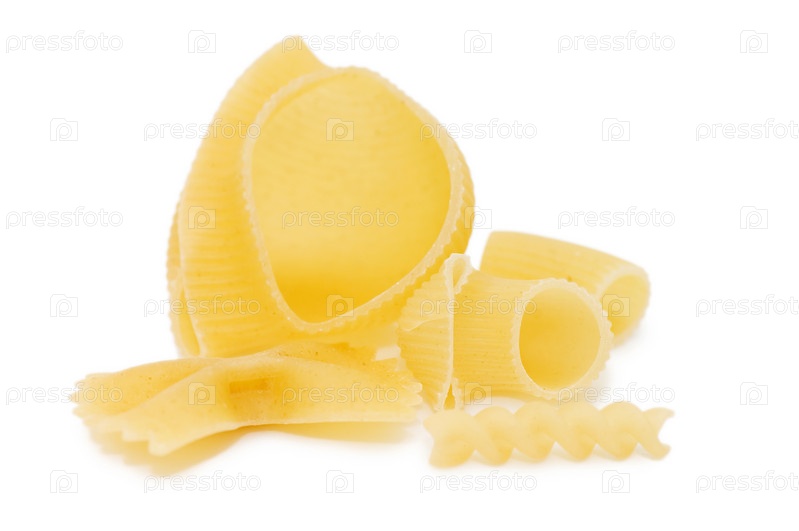 Сырые макароны на белом фоне