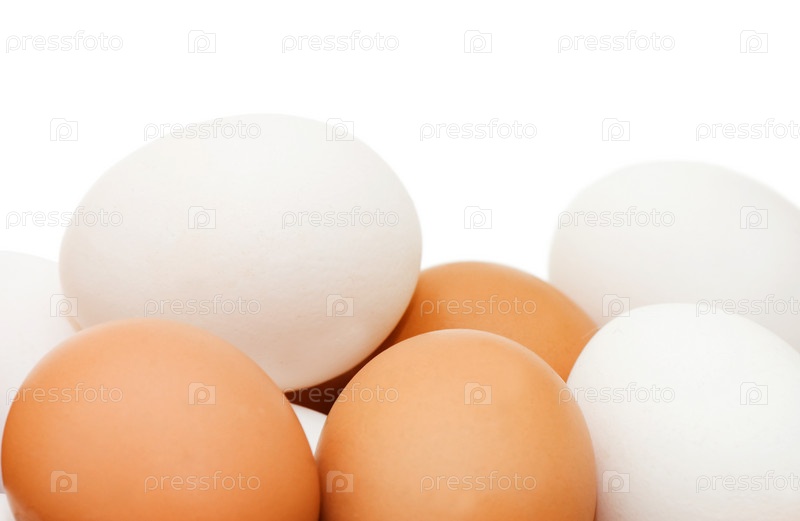 Куриные яйца на белом фоне