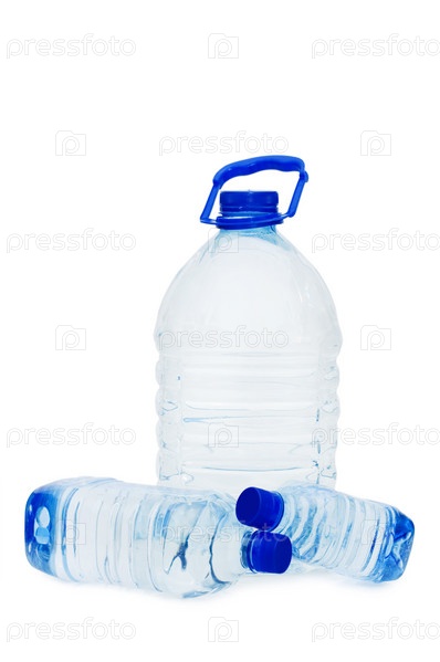Бутылки для воды на белом фоне
