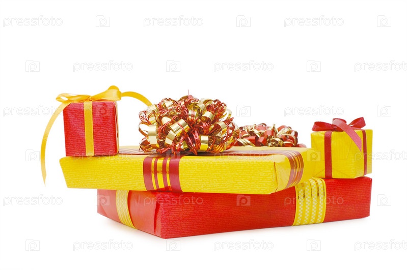Коробки с подарками на белом фоне