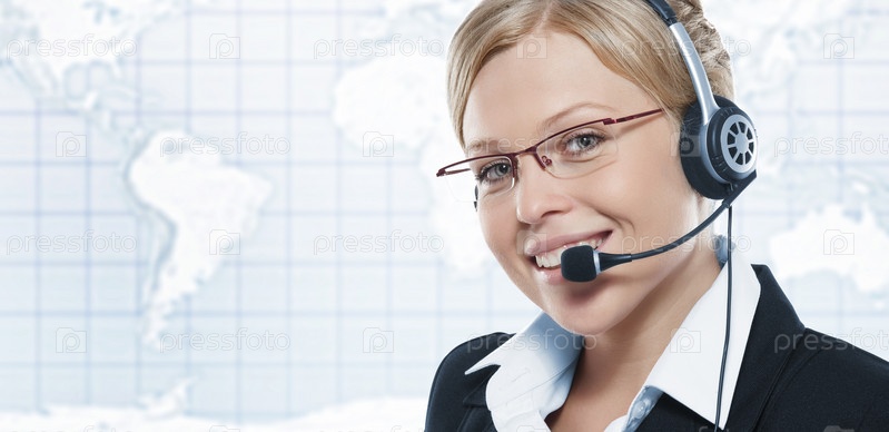 Девушка-оператор службы поддержки с гарнитурой