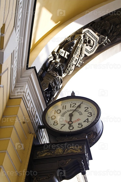Часы на арке здания Главного штаба в Санкт-Петербурге, Россия